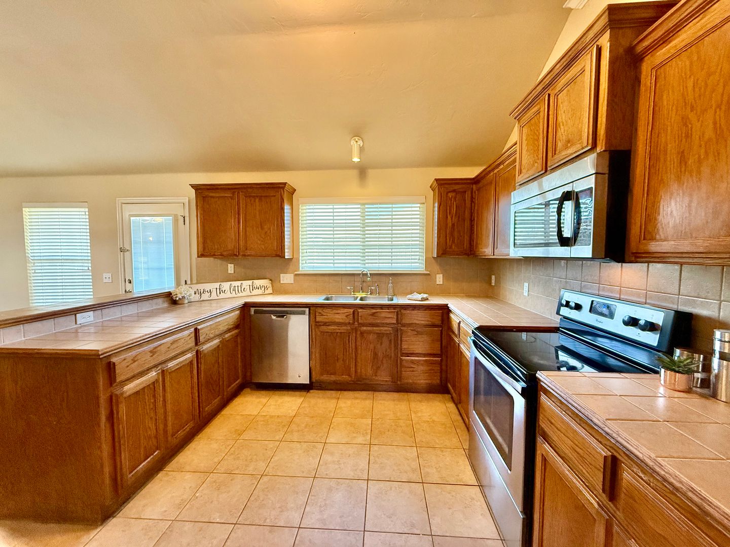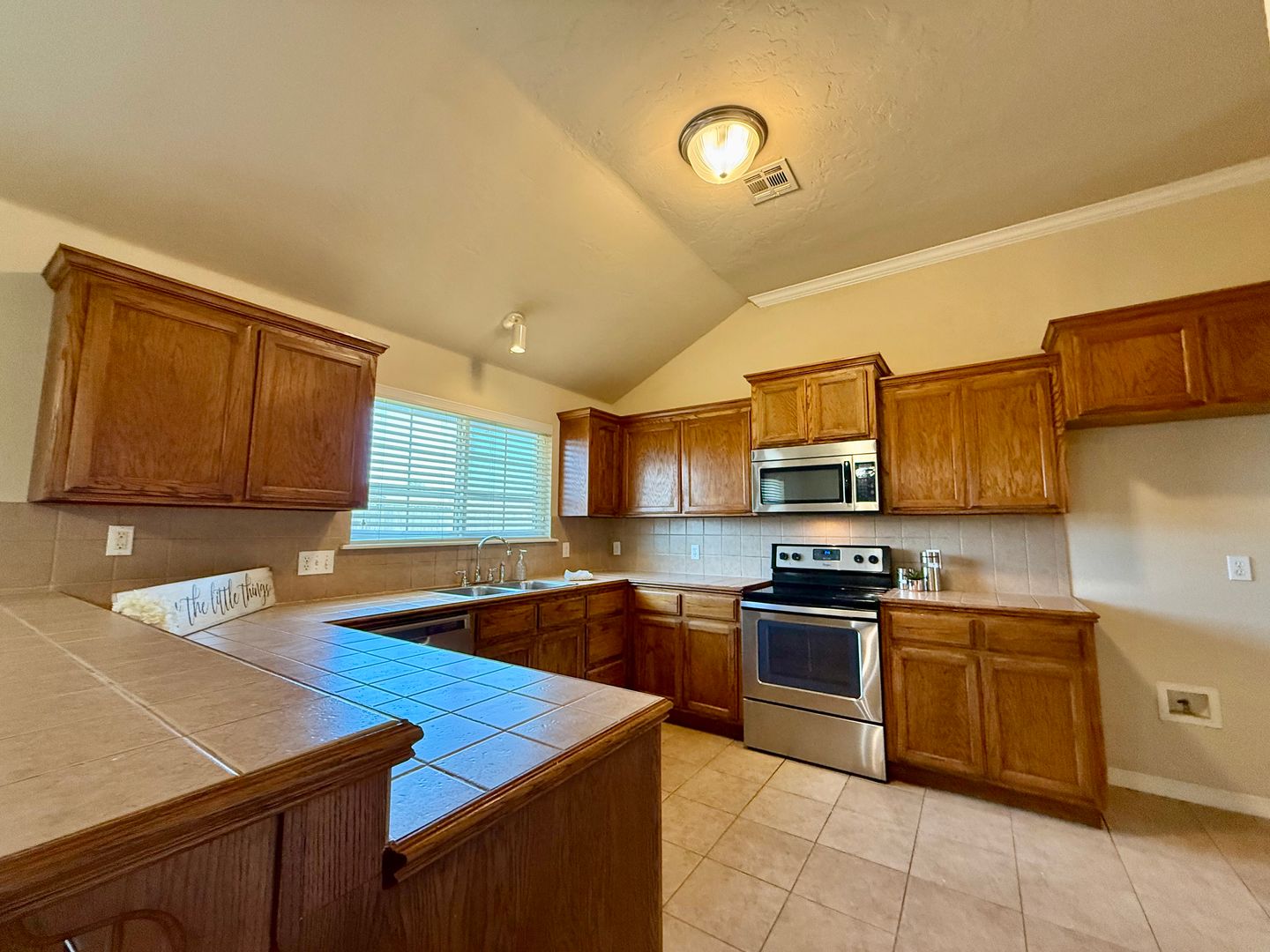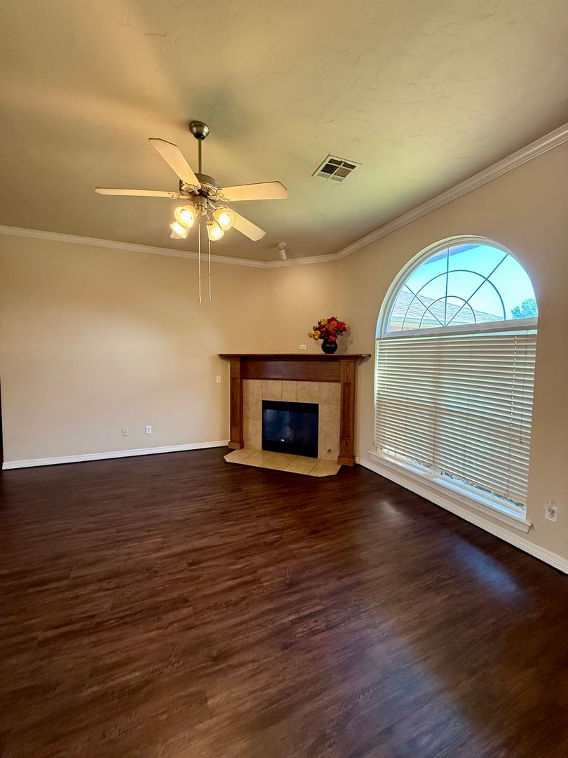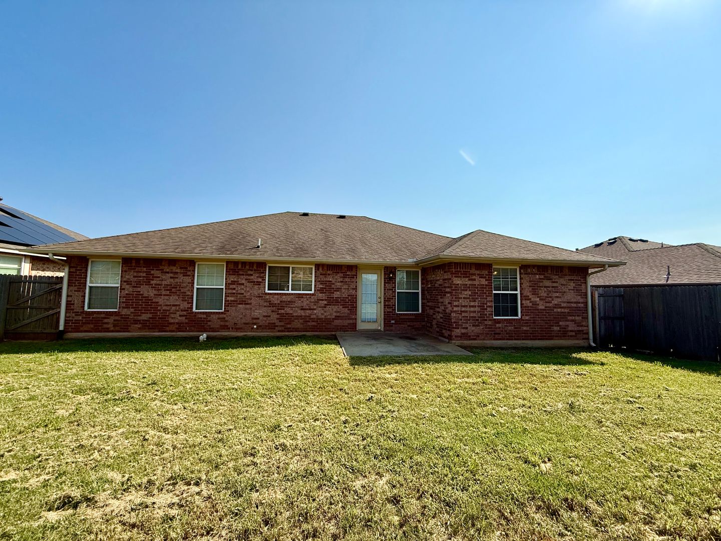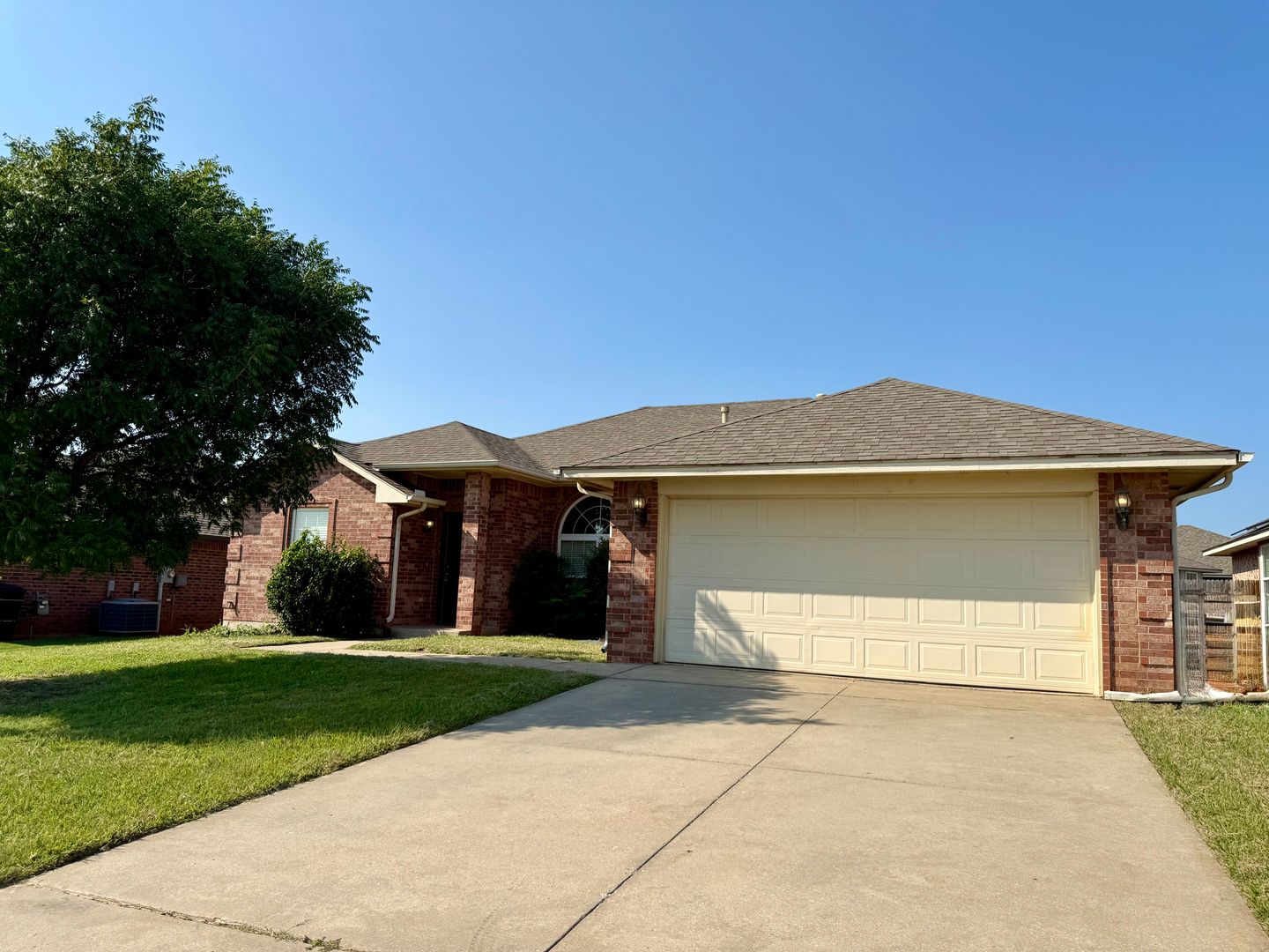 This 1,768 sf home boasts four generously sized bedrooms and a split floor-plan, with the primary bedroom, an en-suite bathroom, and a huge walk-in closet, in it's own wing. The home is bathed in natural light, highlighting the new luxury vinyl flooring throughout. Tall ceilings add to the spacious feel of the home. A large kitchen with stainless steel appliances and a breakfast bar is perfect for those who love to cook and entertain. Enjoy cozy evenings gathered around the wood burning fireplace this fall and winter. This home includes a 2-car garage, a privacy-fenced backyard, and great neighbors, nestled in Moore's Apple Valley subdivision (HOA dues are paid by the owner). This home is a perfect blend of comfort and luxury. Visit MimoforRent.com today to schedule a private showing.